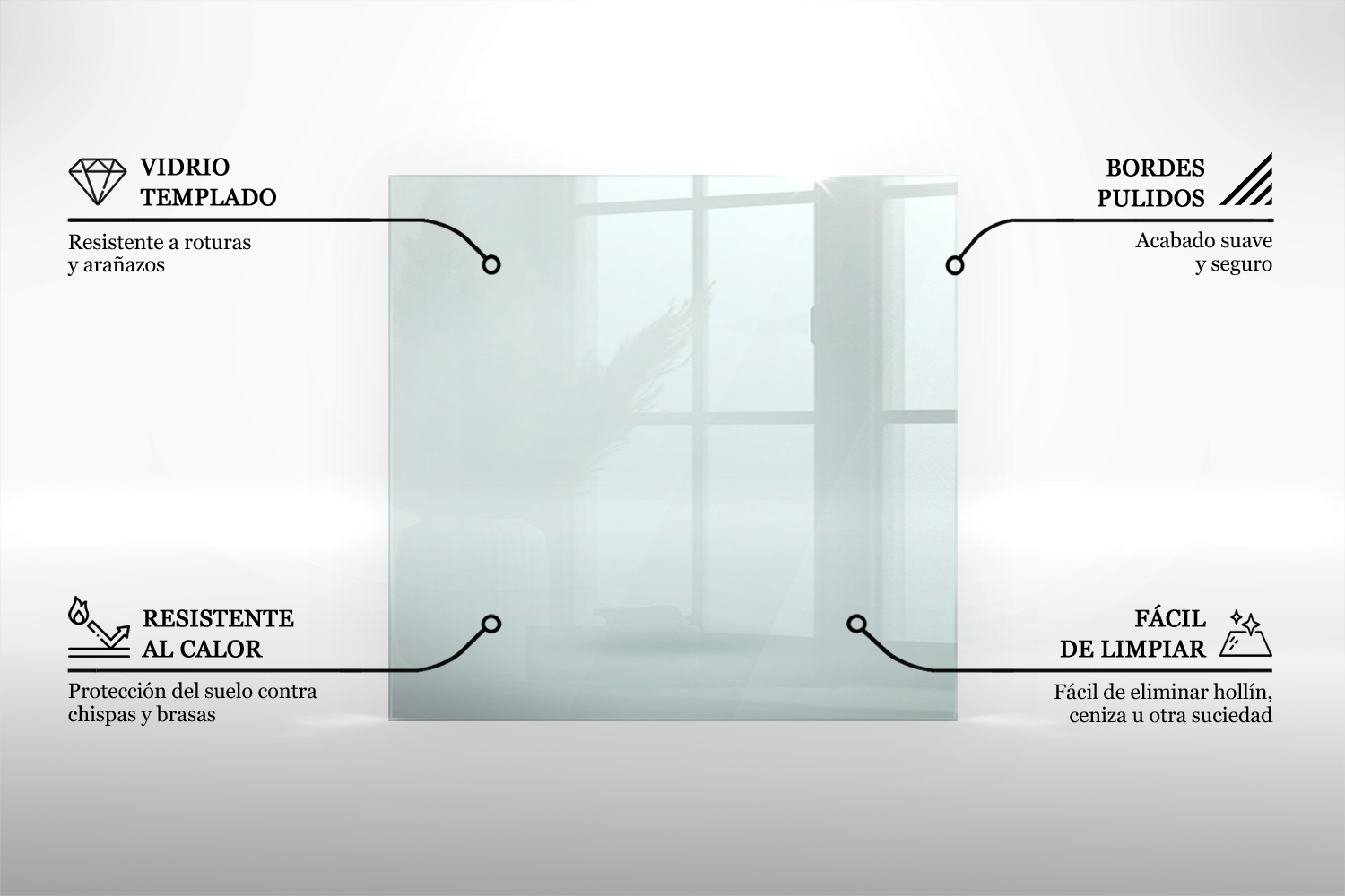 Además de ser funcional, Protector de suelo para estufa representa una auténtica declaración de estilo. Su diseño minimalista y versátil combina a la perfección con una amplia variedad de ambientes: desde interiores modernos y contemporáneos hasta espacios rústicos o escandinavos. No importa cómo sea el salón o la sala de estar: esta base de vidrio templado se integra de forma armónica, aportando un aire sofisticado y cuidado. La instalación es rápida y sencilla, y el resultado, inmediato: más seguridad, menos limpieza y un acabado pulido que realza la belleza de la chimenea. Transforma el espacio en un lugar más acogedor, protegido y con estilo. Invierte en calidad, confort y diseño.